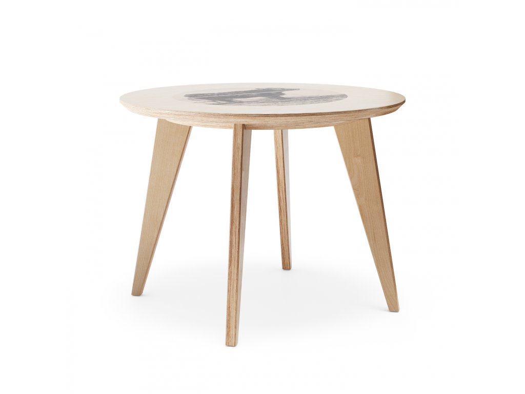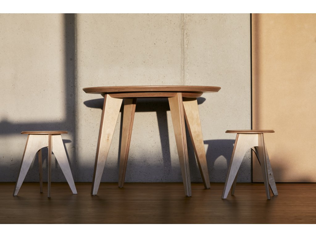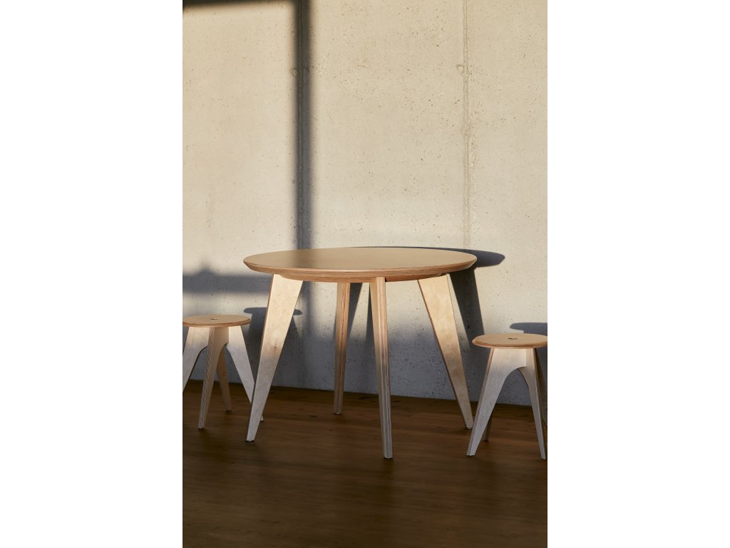 Ke kulatému stolu No.4 mohou pohodlně zasednout čtyři osoby nejen k dobrému jídlu, ale i k rovnoprávné diskuzi. Jeho konstrukce je řešena kompletně z překližky a přidanou hodnotu mu dodavá možnost výtvarného zpracování stolové desky. Nabízi se ve ve zvoleném odstínu HPL nebo s potiskem umělecké fotografie.
