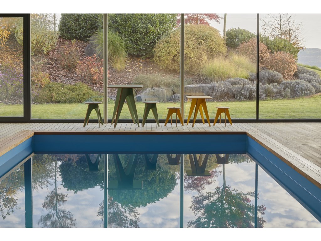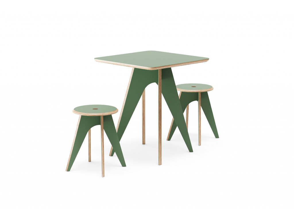 Zelený set z kolekce Stool představuje něco pro všechny, kteří chtějí stylově posedět, stolovat nebo hrát v kavárně: Člověče, nezlob se! Díky čistému tvarosloví, hravým barvám může jednoduše doplnit a oživit stávající vybavení soukromých interiérů i veřejných prostor.