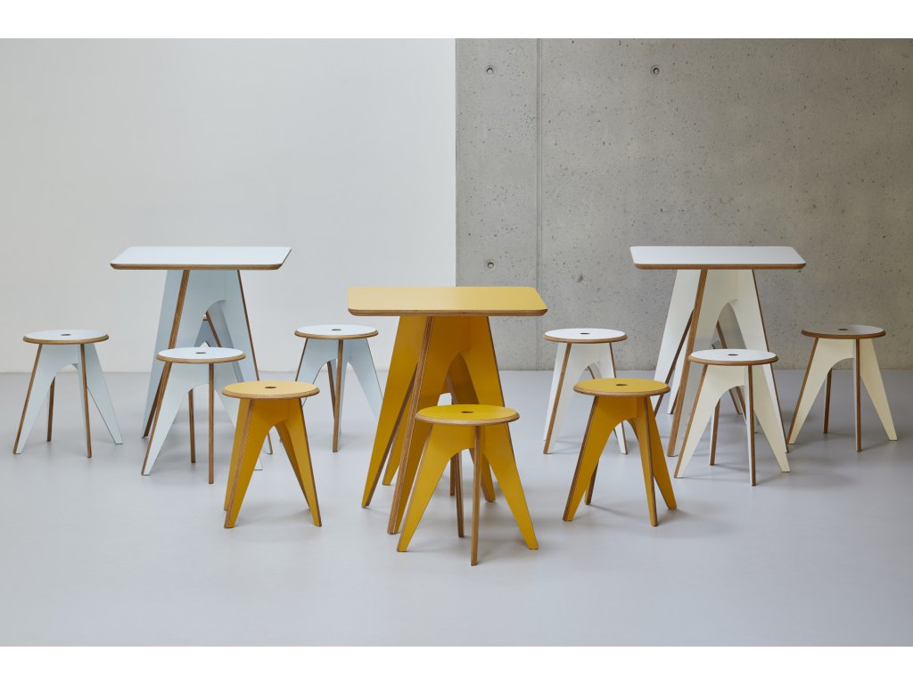 Cihlový set z kolekce Stool představuje něco pro všechny, kteří chtějí stylově posedět, stolovat nebo hrát v kavárně: Člověče, nezlob se! Díky čistému tvarosloví, hravým barvám může jednoduše doplnit a oživit stávající vybavení soukromých interiérů i veřejných prostor.